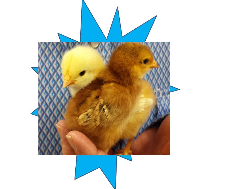 Two Chicks with blue background | ||