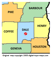| current | ★ Approved revision 16:52, 24 May 2018 | 221 × 247 (25 KB) | Dotxinxoz (talk | contribs) | Map courtesy of [https://www.digital-topo-maps.com/county-map/alabama.shtml Digital-Topo-Maps.com]. Copyright 2005.<br> Category:Alabama Maps Category:Dale County, Alabama |