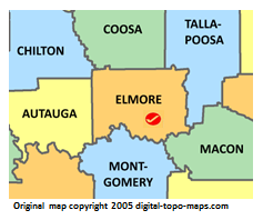 | current | ★ Approved revision 16:59, 24 May 2018 | 237 × 198 (26 KB) | Dotxinxoz (talk | contribs) | Map courtesy of [https://www.digital-topo-maps.com/county-map/alabama.shtml Digital-Topo-Maps.com]. Copyright 2005.<br> Category:Alabama Maps Category:Elmore County, Alabama |