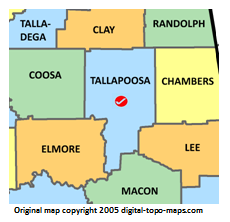| current | ★ Approved revision 06:20, 25 May 2018 | 230 × 222 (24 KB) | Dotxinxoz (talk | contribs) | Map courtesy of [https://www.digital-topo-maps.com/county-map/alabama.shtml Digital-Topo-Maps.com]. Copyright 2005.<br> Category:Alabama Maps Category:Tallapoosa County, Alabama |