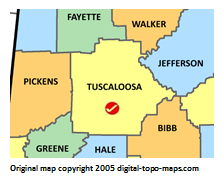 | current | ★ Approved revision 06:21, 25 May 2018 | 224 × 182 (22 KB) | Dotxinxoz (talk | contribs) | Map courtesy of [https://www.digital-topo-maps.com/county-map/alabama.shtml Digital-Topo-Maps.com]. Copyright 2005.<br> Category:Alabama Maps Category:Tuscaloosa County, Alabama |