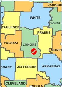 Clicakble County map for Lonoke County, Arkansas