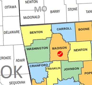 | current | ★ Approved revision 09:34, 28 February 2014 | 385 × 358 (31 KB) | Wyzer17 (talk | contribs) | Clickable County map for Madison County, Arkansas |