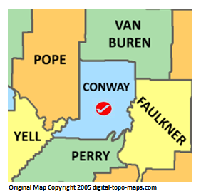 | current | ★ Approved revision 09:21, 11 May 2018 | 282 × 275 (37 KB) | Bethcottam (talk | contribs) | Map courtesy of [https://www.digital-topo-maps.com/county-map/arkansas.shtml]. Copyright 2005.<br> Category:Arkansas Maps Category:Conway County, Arkansas |