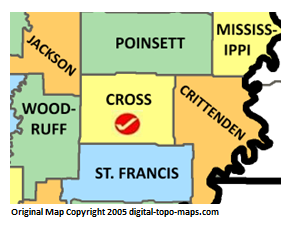 | current | ★ Approved revision 10:10, 11 May 2018 | 292 × 225 (38 KB) | Bethcottam (talk | contribs) | Map courtesy of [https://www.digital-topo-maps.com/county-map/arkansas.shtml]. Copyright 2005.<br> Category:Arkansas Maps Category:Cross County, Arkansas |