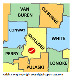| current | ★ Approved revision 17:00, 21 May 2018 | 254 × 272 (41 KB) | Bethcottam (talk | contribs) | Map courtesy of [https://www.digital-topo-maps.com/county-map/arkansas.shtml]. Copyright 2005.<br> Category:Arkansas Maps Category:Faulkner County, Arkansas |