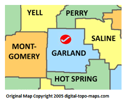 | current | ★ Approved revision 17:47, 21 May 2018 | 256 × 206 (27 KB) | Bethcottam (talk | contribs) | Map courtesy of [https://www.digital-topo-maps.com/county-map/arkansas.shtml]. Copyright 2005.<br> Category:Arkansas Maps Category:Garland County, Arkansas Genealogy County, Arkansas |