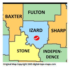 | current | ★ Approved revision 09:29, 22 May 2018 | 276 × 265 (36 KB) | Bethcottam (talk | contribs) | Map courtesy of [https://www.digital-topo-maps.com/county-map/arkansas.shtml]. Copyright 2005.<br> Category:Arkansas Maps Category:Izard County, Arkansas Genealogy County, Arkansas |