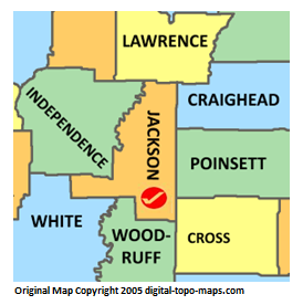 | current | ★ Approved revision 09:44, 22 May 2018 | 274 × 276 (40 KB) | Bethcottam (talk | contribs) | Map courtesy of [https://www.digital-topo-maps.com/county-map/arkansas.shtml]. Copyright 2005.<br> Category:Arkansas Maps Category:Jackson County, Arkansas Genealogy County, Arkansas |