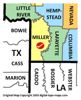 | current | ★ Approved revision 18:54, 24 May 2018 | 260 × 322 (49 KB) | Bethcottam (talk | contribs) | Map courtesy of [https://www.digital-topo-maps.com/county-map/arkansas.shtml]. Copyright 2005.<br> Category:Arkansas Maps Category:Miller County, Arkansas |