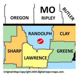 | current | ★ Approved revision 11:28, 5 June 2018 | 273 × 261 (32 KB) | Bethcottam (talk | contribs) | Map courtesy of [https://www.digital-topo-maps.com/county-map/arkansas.shtml]. Copyright 2005.<br> Category:Arkansas Maps Category:Randolph County, Arkansas |