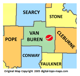 | current | ★ Approved revision 07:42, 7 June 2018 | 267 × 254 (32 KB) | Bethcottam (talk | contribs) | Map courtesy of [https://www.digital-topo-maps.com/county-map/arkansas.shtml]. Copyright 2005.<br> Category:Arkansas Maps Category:Van Buren County, Arkansas |