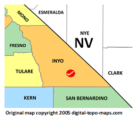 | current | ★ Approved revision 09:03, 12 June 2018 | 274 × 237 (22 KB) | Bethcottam (talk | contribs) | Map courtesy of [https://www.digital-topo-maps.com/county-map/california.shtml]. Copyright 2005.<br> Category:California Maps Category:Inyo County, California |