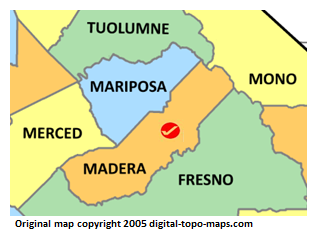 | current | ★ Approved revision 22:27, 12 June 2018 | 319 × 238 (38 KB) | Bethcottam (talk | contribs) | Map courtesy of [https://www.digital-topo-maps.com/county-map/california.shtml]. Copyright 2005.<br> Category:California Maps Category:Madera County, California |
