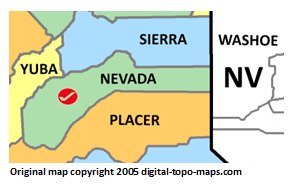 | current | ★ Approved revision 08:15, 13 June 2018 | 294 × 185 (26 KB) | Bethcottam (talk | contribs) | Map courtesy of [https://www.digital-topo-maps.com/county-map/california.shtml]. Copyright 2005.<br> Category:California Maps Category:Nevada County, California |