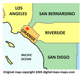 Thumbnail for version as of 08:41, 13 June 2018267 × 245 (30 KB)Bethcottam (talk | contribs)Map courtesy of [https://www.digital-topo-maps.com/county-map/california.shtml]. Copyright 2005.<br> Category:California Maps Category:Orange County, California
