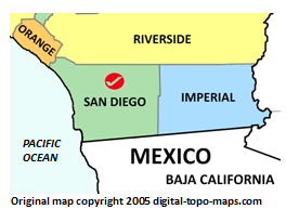 | current | ★ Approved revision 21:12, 13 June 2018 | 264 × 205 (23 KB) | Bethcottam (talk | contribs) | Map courtesy of [https://www.digital-topo-maps.com/county-map/california.shtml]. Copyright 2005.<br> Category:California Maps Category:San Diego County, California |