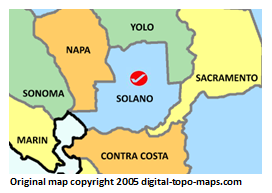 | current | ★ Approved revision 15:25, 14 June 2018 | 272 × 193 (31 KB) | Bethcottam (talk | contribs) | Map courtesy of [https://www.digital-topo-maps.com/county-map/california.shtml]. Copyright 2005.<br> Category:California Maps Category:Solano County, California |