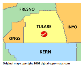 | current | ★ Approved revision 18:38, 14 June 2018 | 291 × 234 (21 KB) | Bethcottam (talk | contribs) | Map courtesy of [https://www.digital-topo-maps.com/county-map/california.shtml]. Copyright 2005.<br> Category:California Maps Category:Tulare County, California |