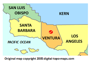 | current | ★ Approved revision 18:57, 14 June 2018 | 298 × 205 (28 KB) | Bethcottam (talk | contribs) | Map courtesy of [https://www.digital-topo-maps.com/county-map/california.shtml]. Copyright 2005.<br> Category:California Maps Category:Ventura County, California |