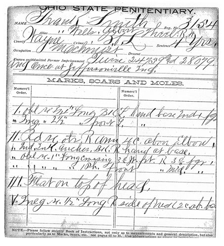 Description: Example of a Bertillon Card - Back, United States Permission: The International Institute of Genealogical Studies gave permission for this image to be used in the FamilySearch Wiki, 20 November 2012. Source: The International Institute of Genealogical Studies