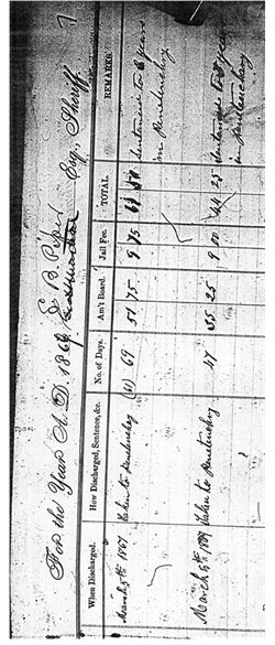 Description: Example Register from the County, County, Ohio Jail Right Side, United States Permission: The International Institute of Genealogical Studies gave permission for this image to be used in the FamilySearch Wiki, 20 November 2012. Source: The International Institute of Genealogical Studies)
