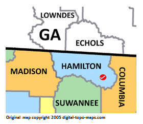 | current | ★ Approved revision 12:26, 7 September 2018 | 280 × 242 (33 KB) | Bethcottam (talk | contribs) | Map courtesy of [https://www.digital-topo-maps.com/county-map/florida.shtml]. Copyright 2005.<br> Category:Florida Maps Category:Hamilton County, Florida |