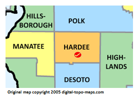 Thumbnail for version as of 12:35, 7 September 2018277 × 199 (23 KB)Bethcottam (talk | contribs)Map courtesy of [https://www.digital-topo-maps.com/county-map/florida.shtml]. Copyright 2005.<br> Category:Florida Maps Category:Hardee County, Florida