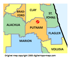 | current | ★ Approved revision 12:55, 10 September 2018 | 237 × 196 (26 KB) | Bethcottam (talk | contribs) | Map courtesy of [https://www.digital-topo-maps.com/county-map/florida.shtml]. Copyright 2005.<br> Category:Florida Maps Category:Putnam County, Florida |