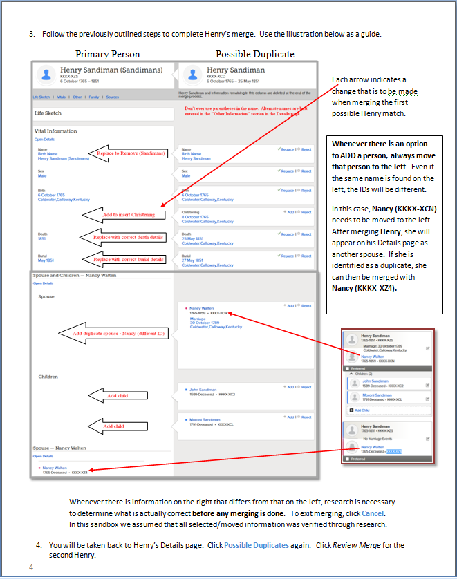 | current | ★ Approved revision 01:46, 16 April 2016 | 661 × 838 (132 KB) | Cgmills (talk | contribs) | Fourth of 6 pages of a Steps with Pictures handout that shows how to find and merge duplicates in Family Tree |