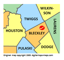 | current | ★ Approved revision 09:20, 19 December 2018 | 222 × 209 (29 KB) | Bethcottam (talk | contribs) | Map courtesy of [https://www.digital-topo-maps.com/county-map/georgia.shtml]. Copyright 2005.<br> Category:Georgia Maps Category:Bleckley County, Georgia |