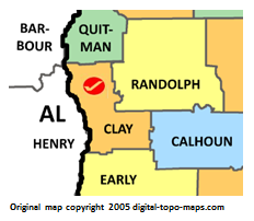 | current | ★ Approved revision 17:24, 20 December 2018 | 232 × 202 (23 KB) | Bethcottam (talk | contribs) | Map courtesy of [https://www.digital-topo-maps.com/county-map/georgia.shtml]. Copyright 2005.<br> Category:Georgia Maps Category:Clay County, Georgia |