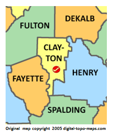 | current | ★ Approved revision 17:39, 20 December 2018 | 224 × 268 (37 KB) | Bethcottam (talk | contribs) | Map courtesy of [https://www.digital-topo-maps.com/county-map/georgia.shtml]. Copyright 2005.<br> Category:Georgia Maps Category:Clayton County, Georgia |