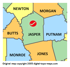 | current | ★ Approved revision 22:10, 1 January 2019 | 244 × 234 (34 KB) | Bethcottam (talk | contribs) | Map courtesy of [https://www.digital-topo-maps.com/county-map/georgia.shtml]. Copyright 2005.<br> Category:Georgia Maps Category:Jasper County, Georgia |