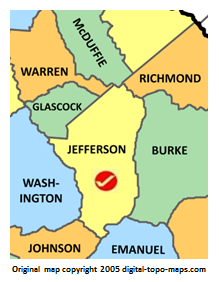 | current | ★ Approved revision 22:28, 1 January 2019 | 219 × 282 (40 KB) | Bethcottam (talk | contribs) | Map courtesy of [https://www.digital-topo-maps.com/county-map/georgia.shtml]. Copyright 2005.<br> Category:Georgia Maps Category:Jefferson County, Georgia |