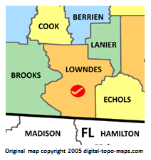| current | ★ Approved revision 09:57, 3 January 2019 | 212 × 226 (26 KB) | Bethcottam (talk | contribs) | Map courtesy of [https://www.digital-topo-maps.com/county-map/georgia.shtml]. Copyright 2005.<br> Category:Georgia Maps Category:Lowndes County, Georgia |
