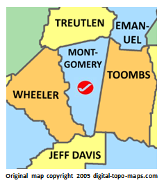 | current | ★ Approved revision 11:59, 3 January 2019 | 236 × 266 (38 KB) | Bethcottam (talk | contribs) | Map courtesy of [https://www.digital-topo-maps.com/county-map/georgia.shtml]. Copyright 2005.<br> Category:Georgia Maps Category:Montgomery County, Georgia |
