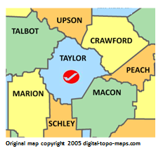| current | ★ Approved revision 10:11, 8 January 2019 | 232 × 218 (32 KB) | Bethcottam (talk | contribs) | Map courtesy of [https://www.digital-topo-maps.com/county-map/georgia.shtml]. Copyright 2005.<br> Category:Georgia Maps Category:Taylor County, Georgia |