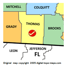 | current | ★ Approved revision 10:39, 8 January 2019 | 228 × 230 (23 KB) | Bethcottam (talk | contribs) | Map courtesy of [https://www.digital-topo-maps.com/county-map/georgia.shtml]. Copyright 2005.<br> Category:Georgia Maps Category:Thomas County, Georgia |