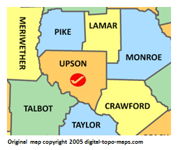 | current | ★ Approved revision 21:24, 10 January 2019 | 255 × 215 (33 KB) | Bethcottam (talk | contribs) | Map courtesy of [https://www.digital-topo-maps.com/county-map/georgia.shtml]. Copyright 2005.<br> Category:Georgia Maps Category:Upson County, Georgia |