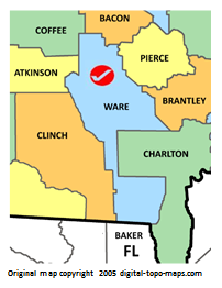 | current | ★ Approved revision 10:41, 11 January 2019 | 202 × 262 (29 KB) | Bethcottam (talk | contribs) | Map courtesy of [https://www.digital-topo-maps.com/county-map/georgia.shtml]. Copyright 2005.<br> Category:Georgia Maps Category:Ware County, Georgia |