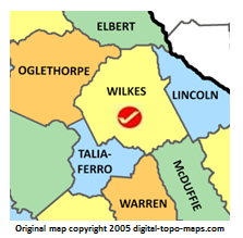 | current | ★ Approved revision 17:20, 12 January 2019 | 223 × 219 (34 KB) | Bethcottam (talk | contribs) | Map courtesy of [https://www.digital-topo-maps.com/county-map/georgia.shtml]. Copyright 2005.<br> Category:Georgia Maps Category:Wilkes County, Georgia |