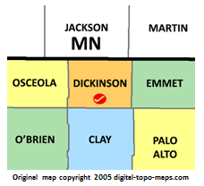 | current | ★ Approved revision 10:27, 7 May 2018 | 228 × 208 (16 KB) | Bethcottam (talk | contribs) | Map courtesy of [https://www.digital-topo-maps.com/county-map/iowa.shtmll]. Copyright 2005.<br> Category:Iowa Maps Category:Dickinson County, Iowa |