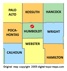 | current | ★ Approved revision 13:03, 7 May 2018 | 217 × 229 (20 KB) | Bethcottam (talk | contribs) | Map courtesy of [https://www.digital-topo-maps.com/county-map/iowa.shtmll]. Copyright 2005.<br> Category:Iowa Maps Category:Humboldt County, Iowa |
