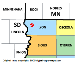 | current | ★ Approved revision 19:32, 7 May 2018 | 259 × 217 (17 KB) | Bethcottam (talk | contribs) | Map courtesy of [https://www.digital-topo-maps.com/county-map/iowa.shtmll]. Copyright 2005.<br> Category:Iowa Maps Category:Lyon County, Iowa |