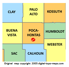 | current | ★ Approved revision 08:12, 8 May 2018 | 229 × 224 (20 KB) | Bethcottam (talk | contribs) | Map courtesy of [https://www.digital-topo-maps.com/county-map/iowa.shtmll]. Copyright 2005.<br> Category:Iowa Maps Category:Pocahontas County, Iowa |