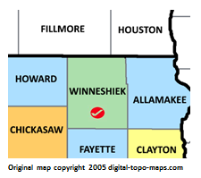 | current | ★ Approved revision 21:13, 8 May 2018 | 225 × 199 (17 KB) | Bethcottam (talk | contribs) | Map courtesy of [https://www.digital-topo-maps.com/county-map/iowa.shtmll]. Copyright 2005.<br> Category:Iowa Maps Category:Winneshiek County, Iowa |