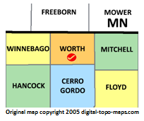 | current | ★ Approved revision 21:17, 8 May 2018 | 204 × 171 (14 KB) | Bethcottam (talk | contribs) | Map courtesy of [https://www.digital-topo-maps.com/county-map/iowa.shtmll]. Copyright 2005.<br> Category:Iowa Maps Category:Worth County, Iowa |