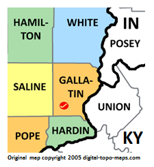 Thumbnail for version as of 12:21, 3 June 2018225 × 245 (27 KB)Dotxinxoz (talk | contribs)Map courtesy of [https://www.digital-topo-maps.com/county-map/illinois.shtml Digital-Topo-Maps.com]. Copyright 2005.<br> Category:Illinois Maps Category:Gallatin County, Illinois