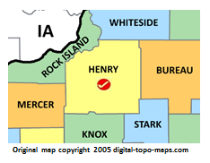 | current | ★ Approved revision 12:27, 3 June 2018 | 234 × 182 (19 KB) | Dotxinxoz (talk | contribs) | Map courtesy of [https://www.digital-topo-maps.com/county-map/illinois.shtml Digital-Topo-Maps.com]. Copyright 2005.<br> Category:Illinois Maps Category:Henry County, Illinois |